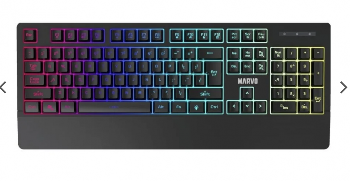Teclado GAMING MARVO K635 SP USB Multimedia con Diseño Ergonómico con Reposamuñecas Negro y Luz de 3 Colores (Fondo del Arco Iris), con 25 Teclas Anti- Ghosting